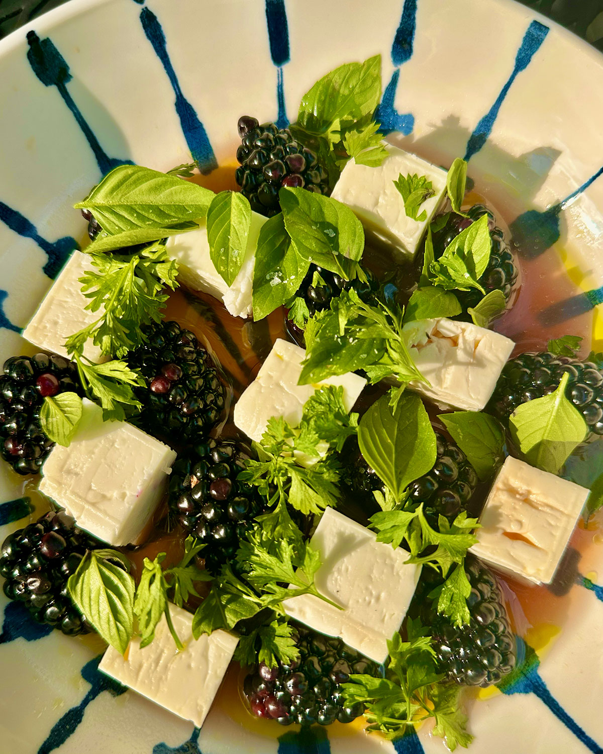 Checkered Feta & Blackberries with Pomegranate Vinaigrette