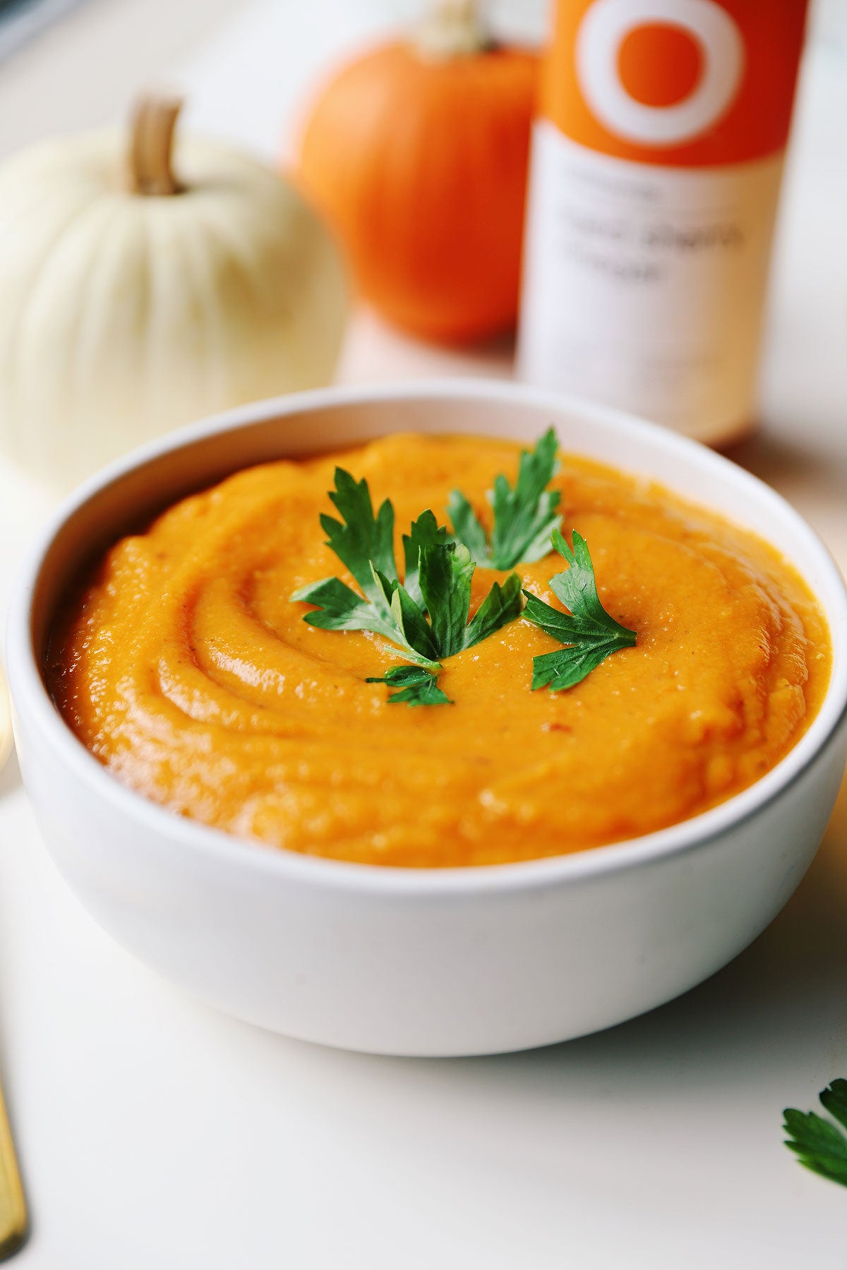1. Cut squash, carrots, and onion into 2 inch pieces. Spread onto a parchment-lined pan. Drizzle avocado oil and salt on top.