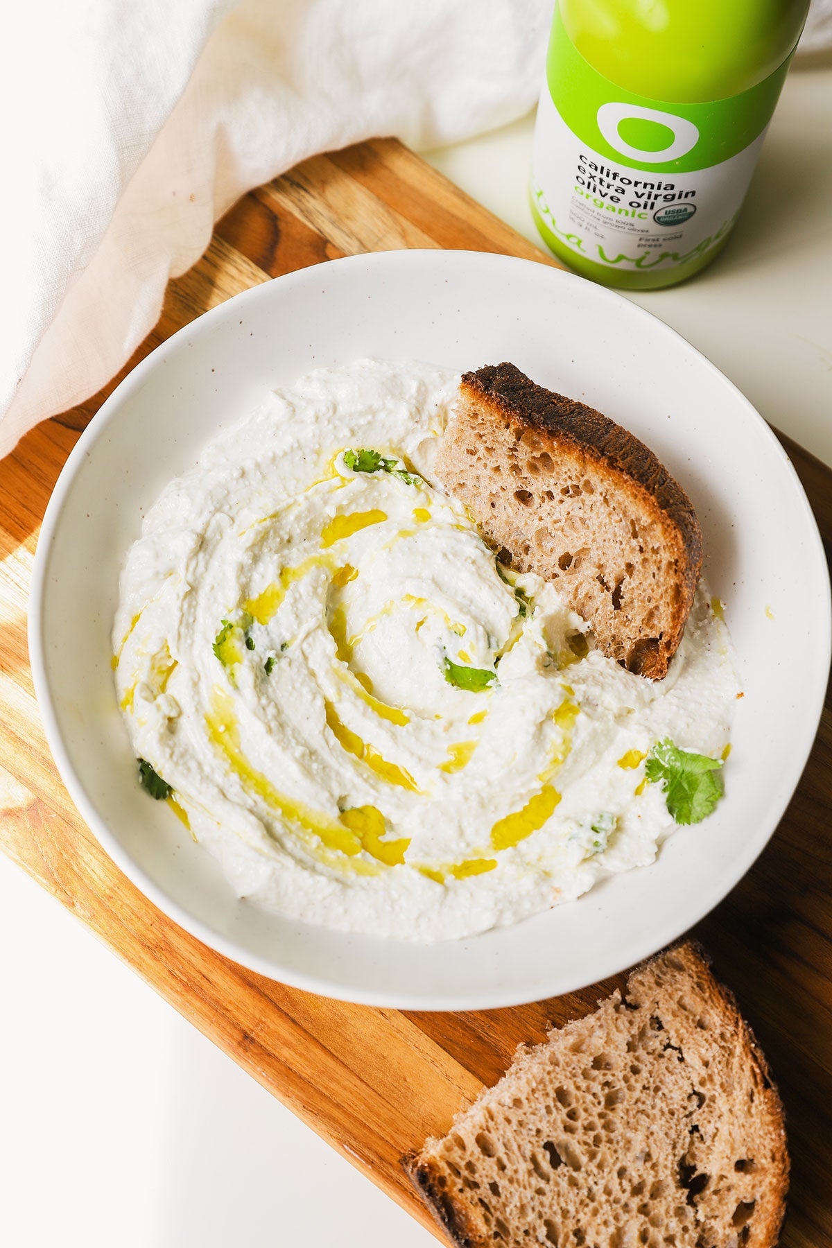 2. Spread into a bowl and top with parsley or cilantro and extra O Olive Oil.