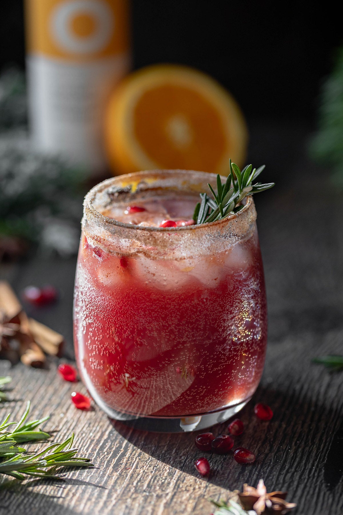 2. In a shaker, mix together pomegranate juice, orange juice, tequila, orange liqueur, Orange Blossom Vinegar, vanilla, maple syrup, ginger, cinnamon, & rosemary sprig. Shake well to combine.