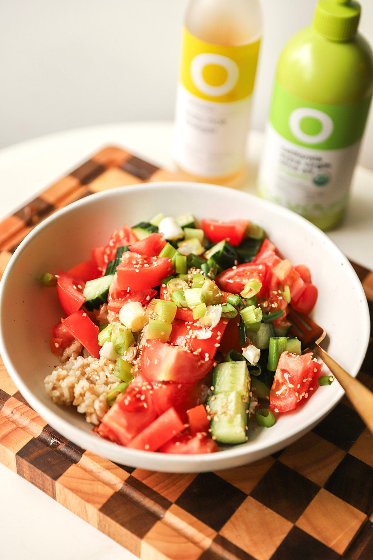 3 tbsp O’s Organic Extra Virgin Olive Oil, plus more for finishing