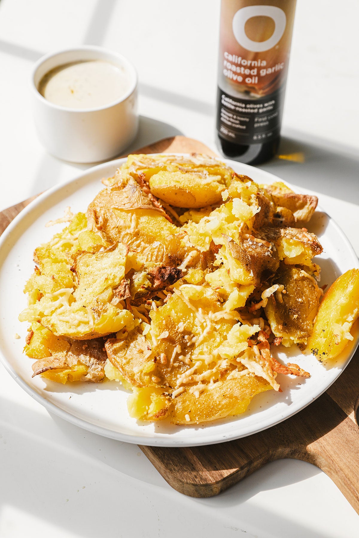 Fresh roasted garlic paired with olives grown in California. Family farmed with love. No artificial anything — ever! A difference you can taste.